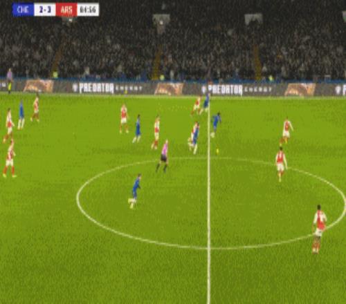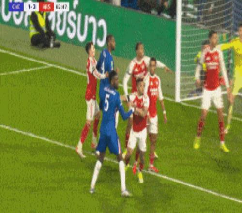 第83分钟,切尔西角球机会,加纳乔凌空抽射破门梅开二度,切尔西再追一球,2-3阿森纳。